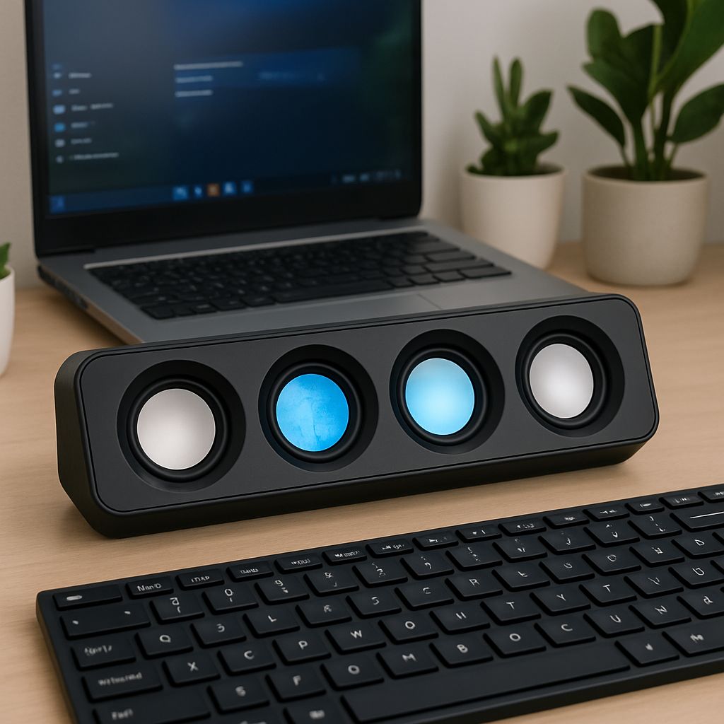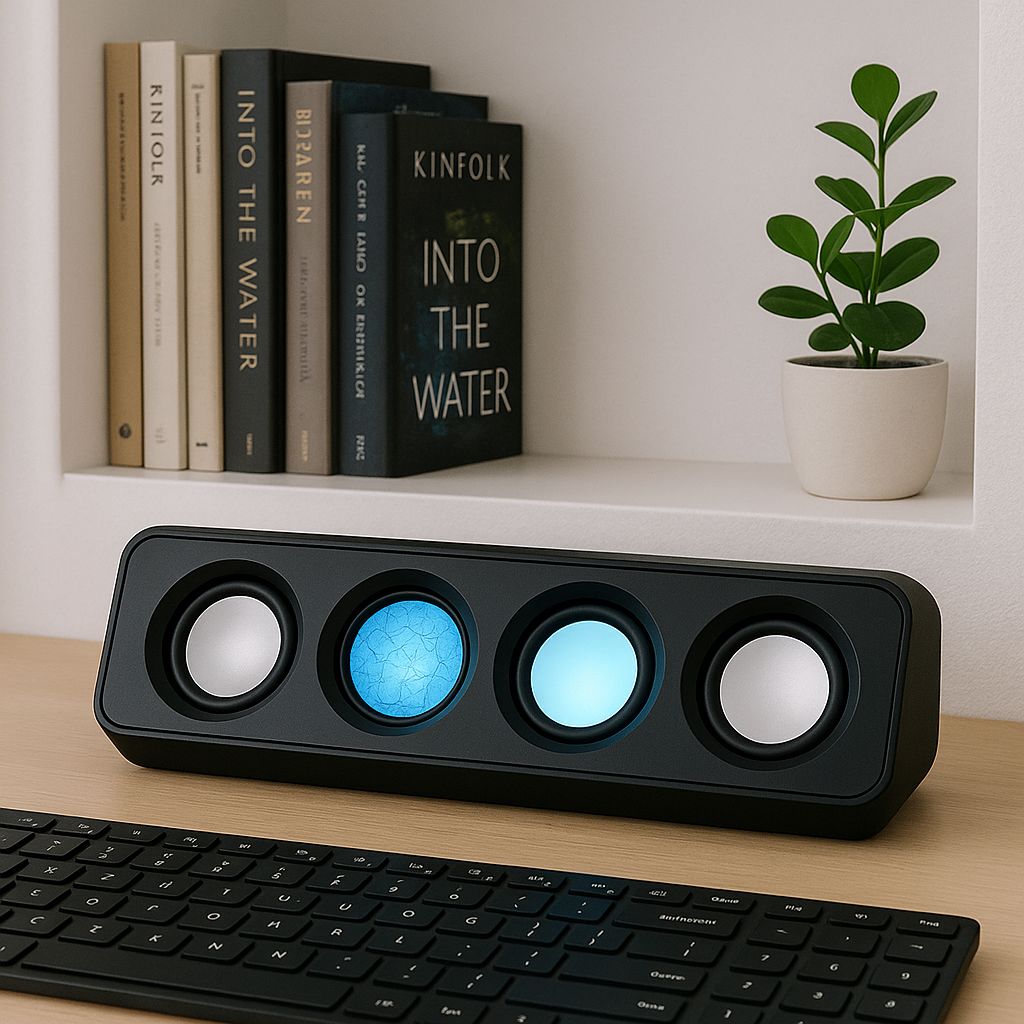 Ce Haut Parleur compact et moderne s’intègre parfaitement à votre espace de travail ou de loisirs, en ajoutant à la fois performance et style.