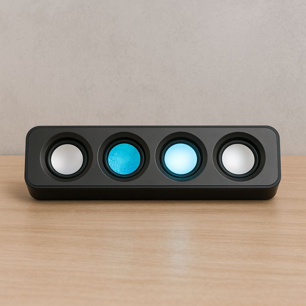 Avec son format élégant et discret, le Haut Parleur BassCore™ trouve sa place sur n’importe quel bureau ou meuble TV.